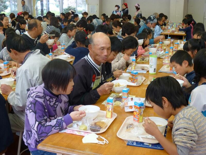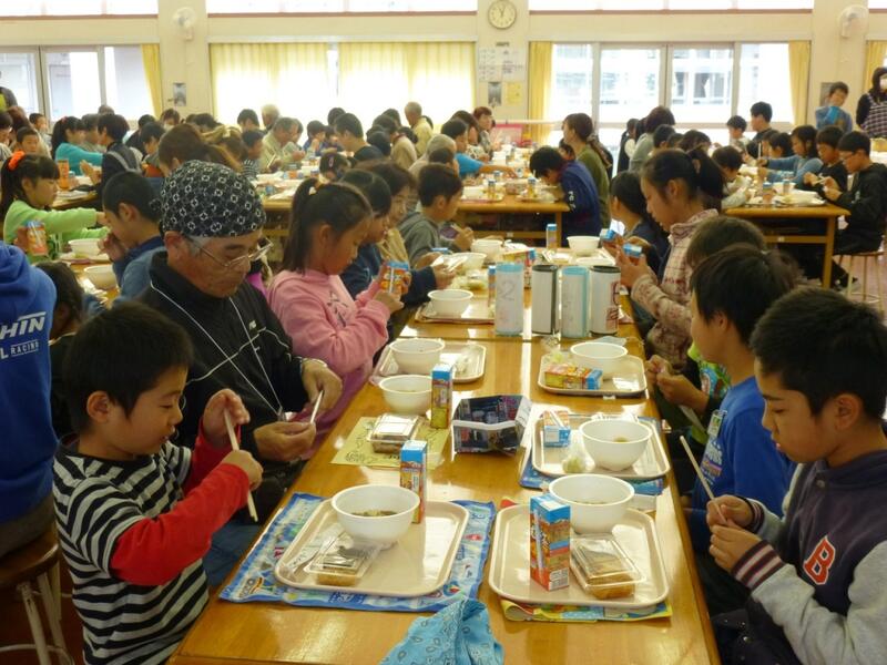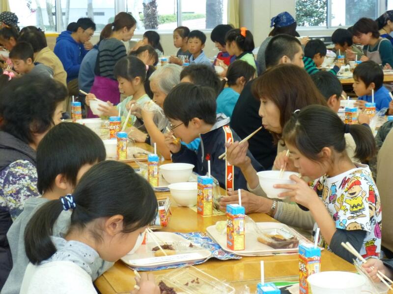 出来あがった、スイートポテト、もち、けんちんうどんは、みんなに配り、全員がランチルームに集まり、会食をしました。楽しいひとときを過ごすことができました。