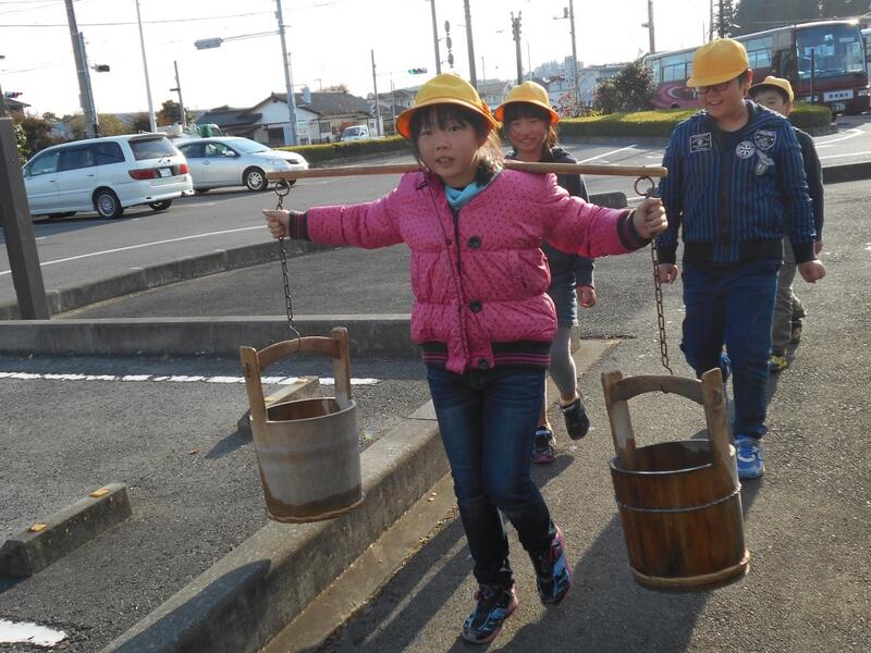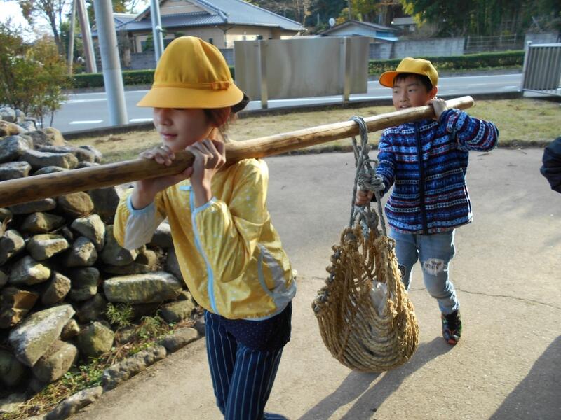 午後は、「那須野が原博物館」を見学し、「天秤棒」を使い、桶で水を運んだり、「もっこかつぎ」で、石を運んだりする体験をしました。