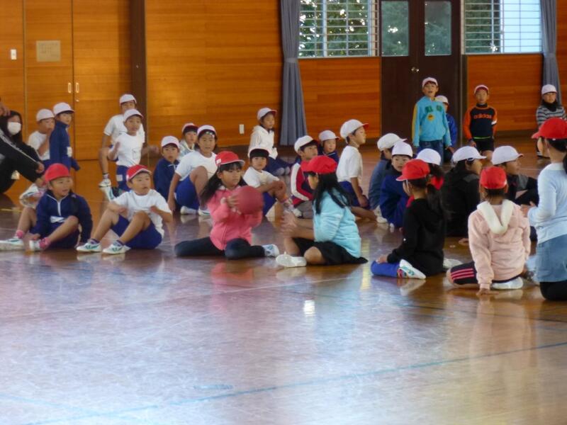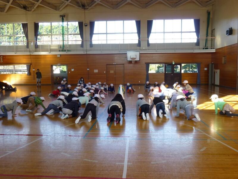 1年生から4年生は、体育館で、うし(動かない)・うま(反対側へ動く)のゲームを行いました。