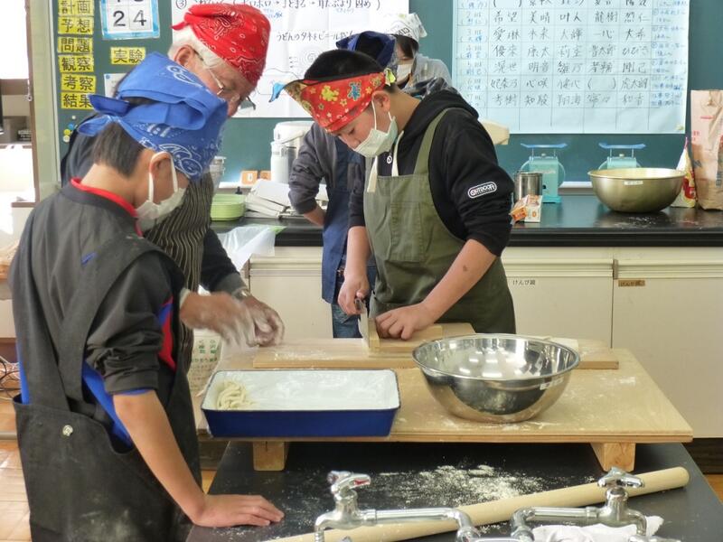 来ていた子どもたちに声をかけようという趣旨です。また、今年はイベントとして「小学生氏家うどん打ち大会」が行われました。押上小からも2名が参加しました。