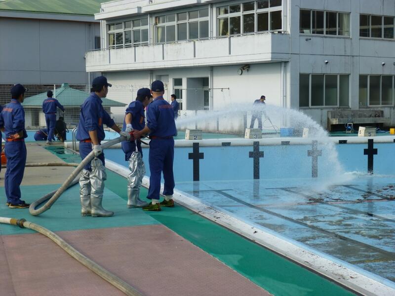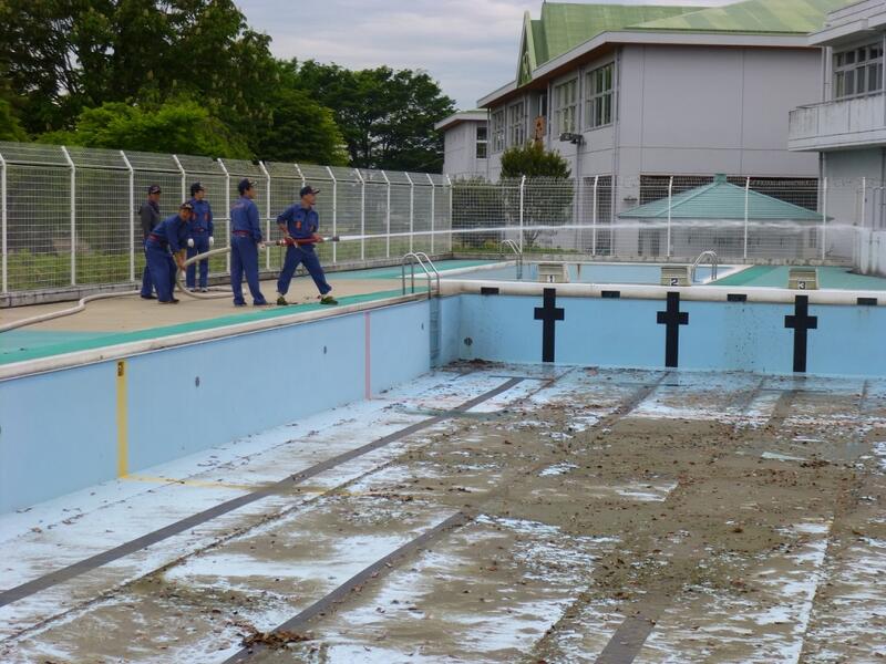 5月14日(土)の早朝(5時半頃)から、さくら市消防団・第三分団の皆さんが、プールの清掃をしてくださいました。プールの周りには樹木があるため、リヤカー1台分の木の葉がたまっていました。また、泥もたまっており、取り除くのが大変でした。25日(水)には、5年生と6年生がデッキブラシを使って、最後の仕上げをして、きれいにする予定です。消防団員の皆様には、大変お世話になりました。