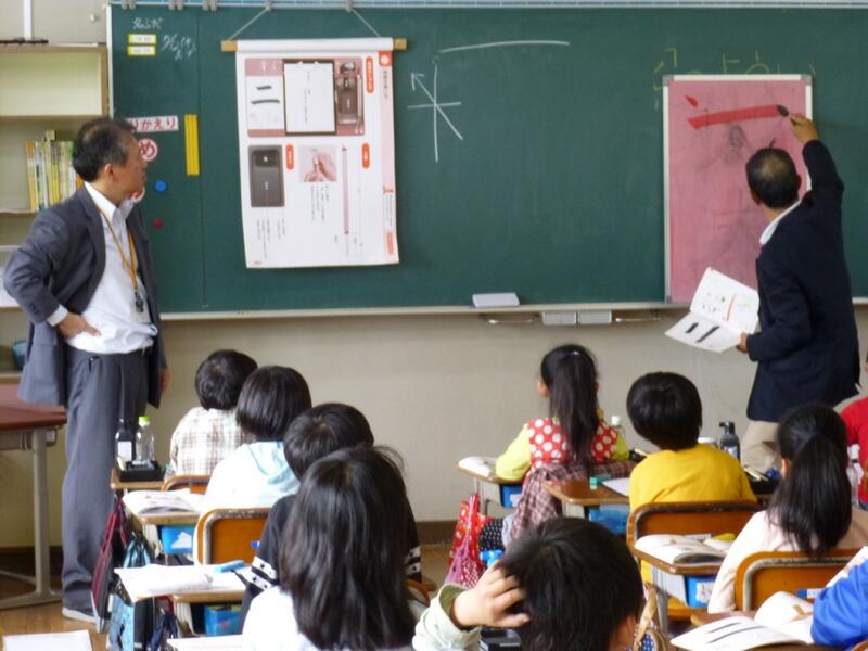 5月10日(火)の3年生の書写(毛筆)の時間に、外部講師をお願いし、書道の専門の先生に指導をしていただいています。1年間に10数時間をお願いしています。道具の使い方、筆の持ち方、基本的な文字の書き方などを学習しています。