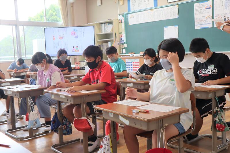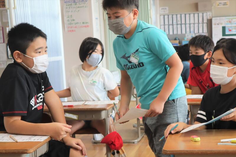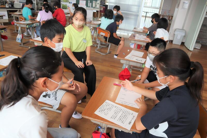 5年生の国語「どちらを選びますか」の授業の様子です。この単元のめあては「立場をはっきりさせて話し合い 1つの問題を2つの立場で考えよう」です。子どもたちはグループになって、互いの立場や意図を明確にしながら、考えを広げたりまとめたりしていました。また、それぞれのグループが互いに意見を言った後、質疑応答をします。説得力のある表現をするためには、相手の意見をしっかり聞くことが大切ですね。
