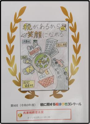 「税に関する絵はがきコンクール」に応募した本校児童が「氏家税務署長賞」を受賞しました。