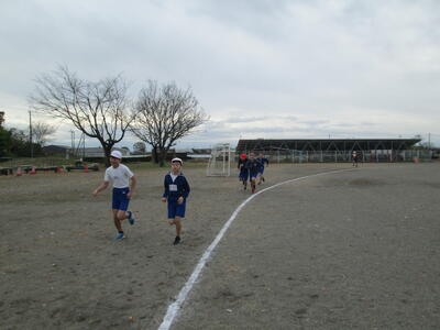子どもたちは、記録会まで、体育の授業や業間休みなどで練習をしてきました。 特に6年生は、日に日に練習に力が入り、ペアで競うように走ったり、インターバルで練習したり、また、声を掛けて励ましたりと最高学年らしく取り組んでいました。