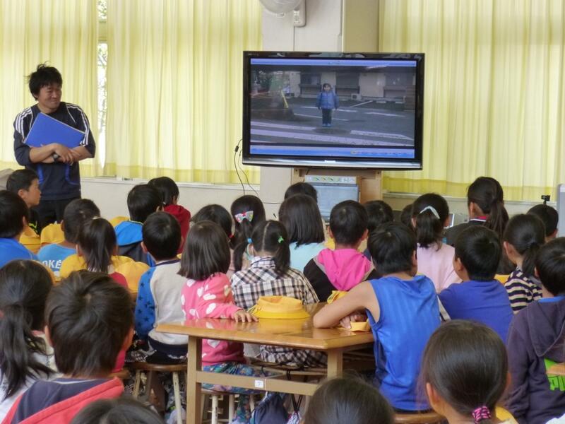 4月26日(火)に、交通安全教室を行いました。駐在所の警察官やまつのみパトロールの隊員の皆様に見ていただきました。ランチルームでは、DVDを使い、「止まる・見る・確かめる」が大切であることを学びました。また、校庭に作成した「模擬道路」では、交差点の渡り方や道路の歩き方を実際に訓練しました。明日からの登下校に生かしていきたいと思います。