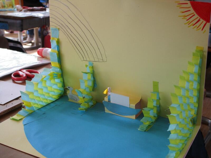 この単元では、3年生の学習を振り返り、これまでに作った作品の中から”お気に入り”の作品を選び、友だちに紹介する文を書きます。