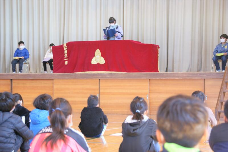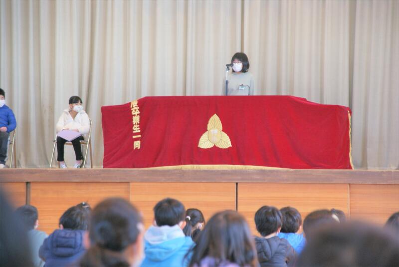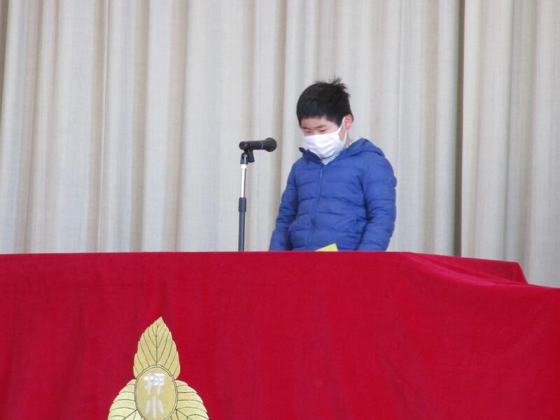修了式の後、代表児童による作文発表「一年間を振り返って」を行いました。