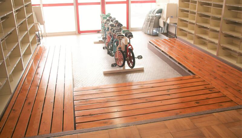 昇降口にある「すのこ」のおかげもあって、砂が廊下や教室まで持ち込まれずに済んでいます。