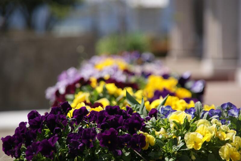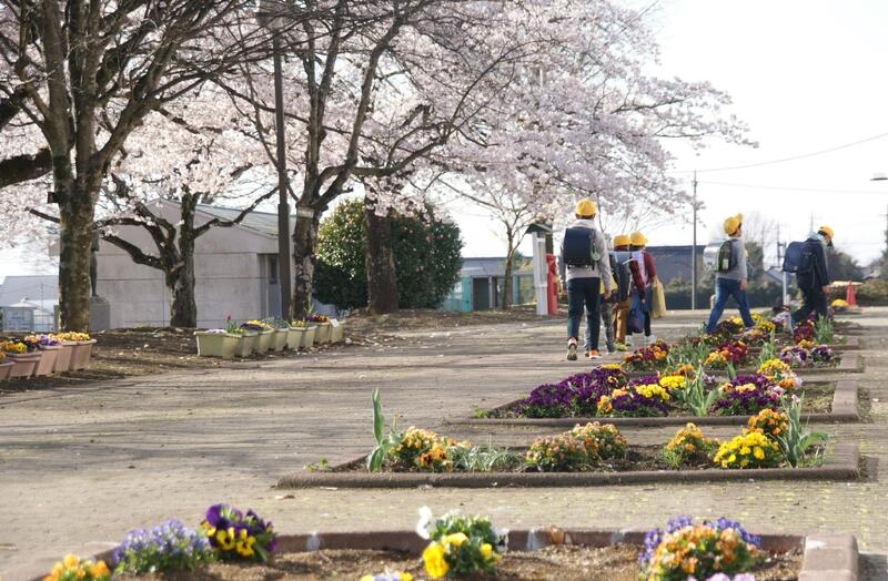 下の写真は、4月19日(火)のお昼前に職員室前の花壇の様子を撮影したものです。