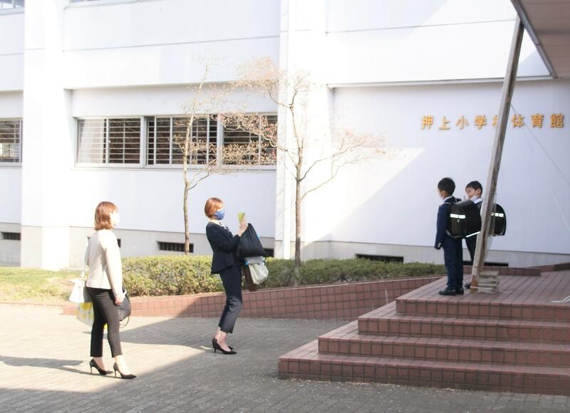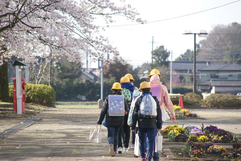 桜の花びらが舞い散る中、元気なあいさつとともに子どもたちが登校してきました。