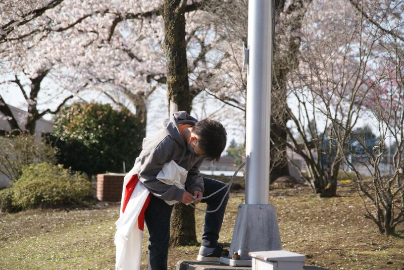 6年生の国旗当番も、いつものようにていねいに仕事をしていました。(^O^)/