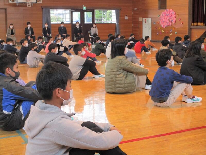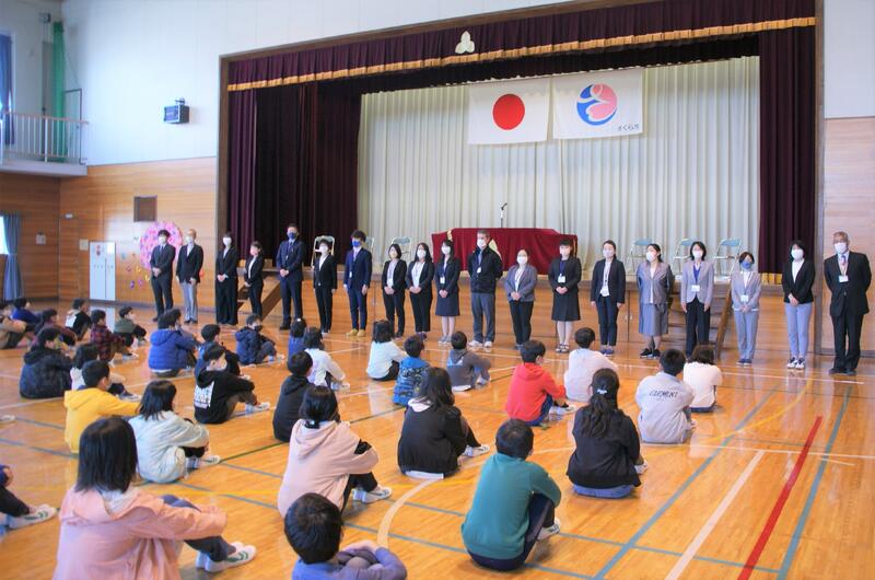 定期異動により7名の先生方が着任し、本日新任式にて子どもたちに紹介しました。