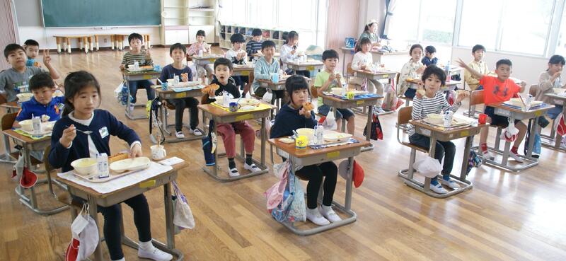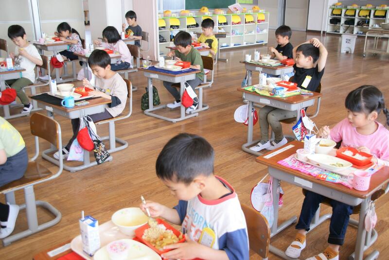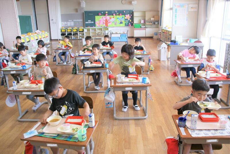 1年生、ご入学おめでとう。今日は、小学生になって初めての給食ですね。小学校の給食は、ただ食べるということだけではなく、給食をとおして食事に興味・関心をもち、食べることの大切さや、食事のマナーなどを学んでいきます。