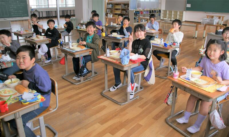 春休みが明け学校給食もスタートしました。久しぶりの給食に笑顔も見られました。そして、しっかりと黙食は習慣になっています。