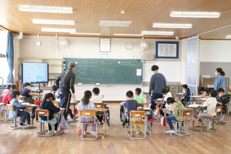 1年生の算数「なかまづくりと かず」の授業の様子です。絵を見ながら楽しく授業をしていました。