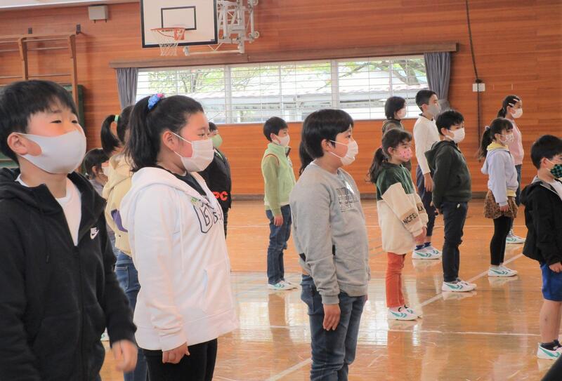 校長先生のお話では、始業式で話した「3つのあ」の一つとして「交通事故にあわないように『あんぜん』に気をつけてほしい」と話していました。また、全国的な傾向とした上で、「低学年は歩いているときに、そして高学年は自転車の事故が多いので、特にみなさんには『飛び出しをしない』ことを意識してほしい」と呼びかけました。