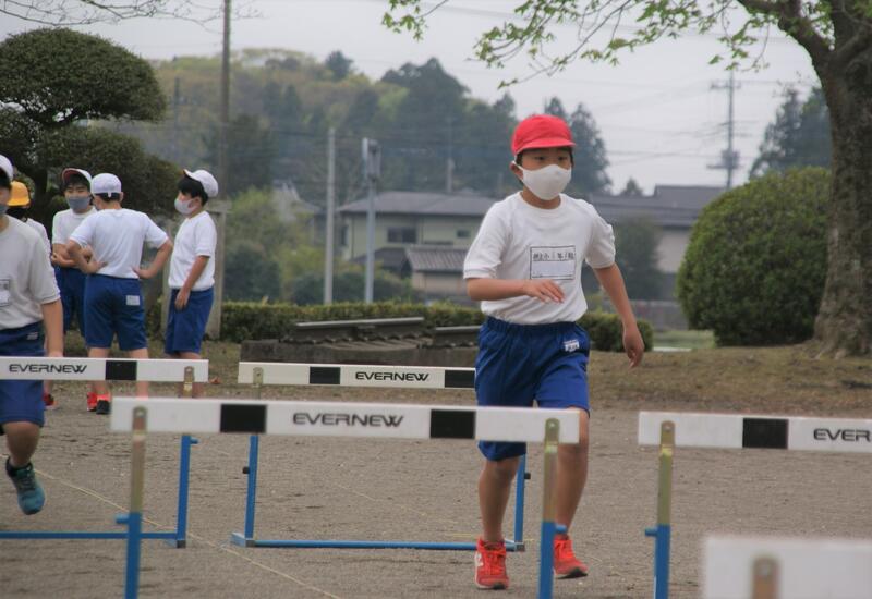 5年生の体育の授業「ハードル走」です。「ハードルをリズミカルに走り越えることができる」ことが主な目標です。
