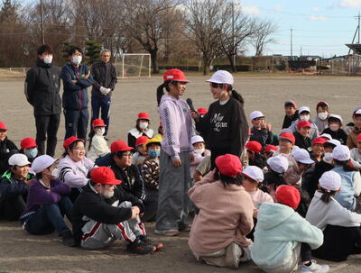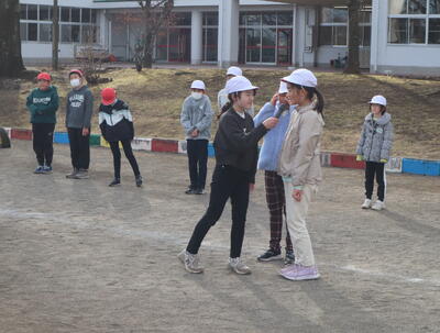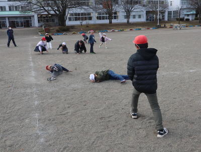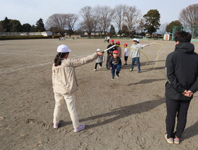 遊ぶのは今回が4回目。今回は「長縄跳び」「だるまさんが転んだ」「ケイドロ」で遊びました。高学年の子どもたちが、準備したり、ルールを伝えたり、小さい子の面倒を見たりと、リーダーの自覚をもって行動していました。