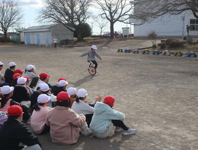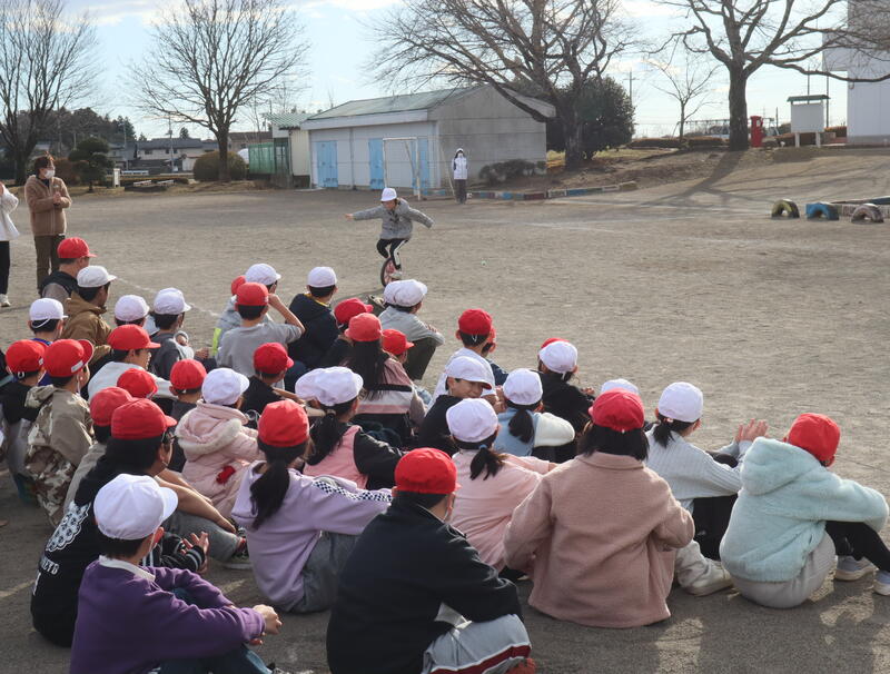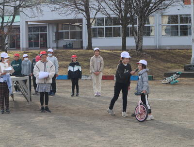 この「まつスタ」は、児童会(1学期代表委員さん)主催によるイベントで、希望者が特技などをみんなの前で披露する発表会です。今回応募した人は、総勢9組(12名)。初日のこの日は、「屋外の部」で、3組(4名)の子どもたちが出場し、特技を披露しました。見ている子も、演技に大きな歓声と拍手。「がんばって!」「かっこいい!」など応援の声もすてきでした。