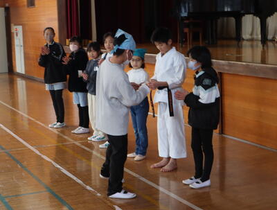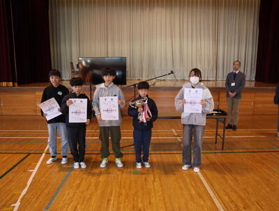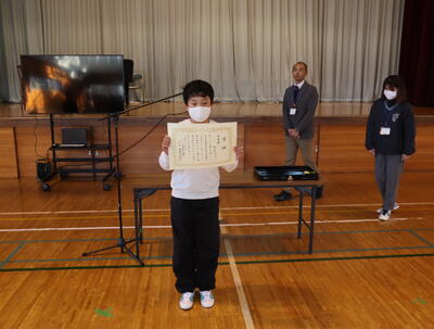 続いて、この秋に行われた各種書道展や口腔衛生関係(よい歯、作文・標語・ポスター)、市駅伝大会、野球大会の表彰を行いました。