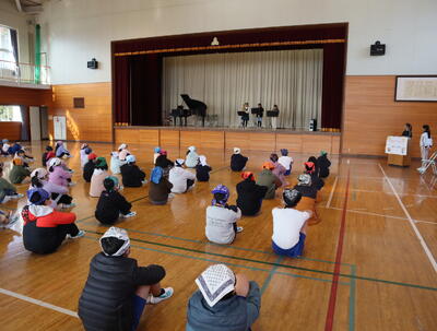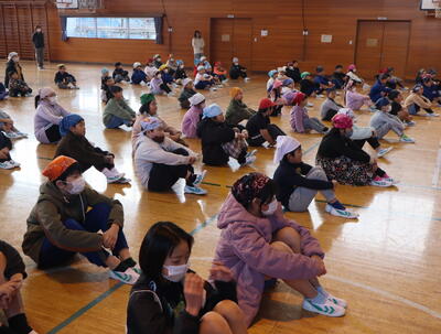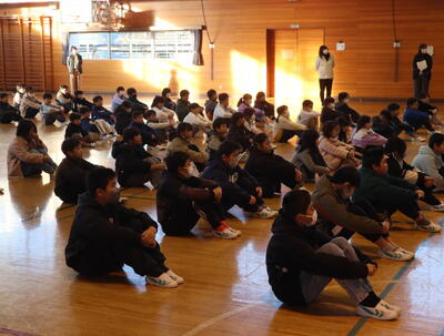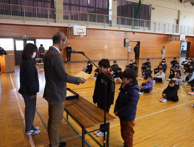 はじめに、私からは、持久走記録会や市駅伝大会、また先日お知らせした「ざぶん大賞」、児童会による「まつスタ」のことを振り返るとともに、明日からの冬休み、気を付けて過ごすことをお話ししました。