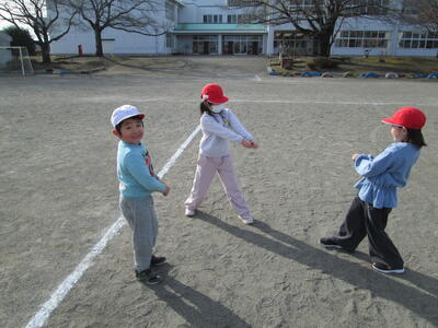 23日の昼休み、「なかよしタイム」を行いました。「まつのみ班」(縦割り班)での自由遊びです。