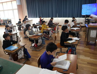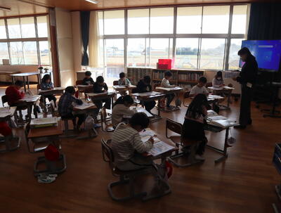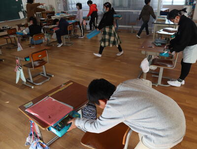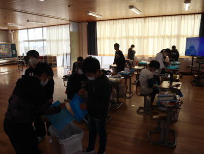 5時間目の様子です。今年2024年、最後の授業です。冬休みの過ごし方や学習などの確認、振り返り、大掃除・整理整頓、お楽しみ会などをしていました。