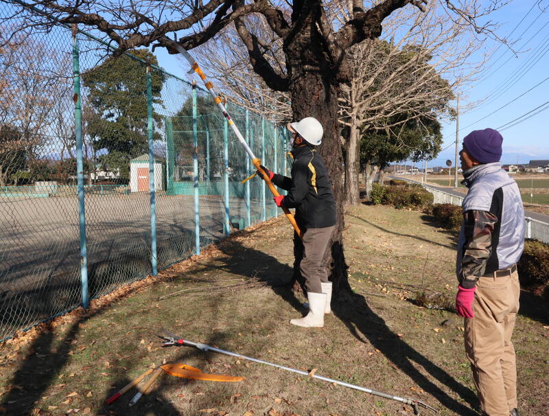 年末年始に向けて、樹木もすっきりとし、校庭もきれいになりました。ありがとうございました。先日の「さくら隊」の皆さまによる清掃、そして今回の「桜守の会」の皆さまによる枯れ枝伐採など、本校は、本当に地域の皆様に支えられていることを実感しています。