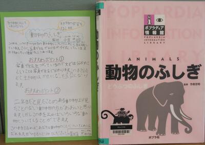 5年生が国語の時間に作成した「この本、おすすめします」が図書と並んで置いてありました。