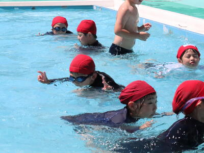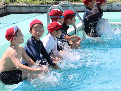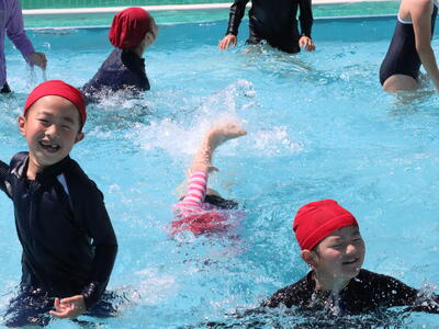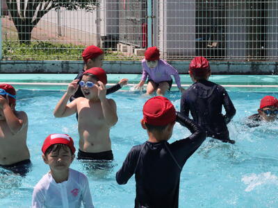 先日の2年生の体育の時間、プールでの水遊びの様子です。