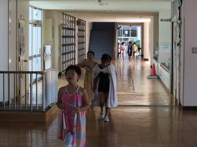 終わった後、教室に戻る子どもたち。タオルを肩にかけて戻る様子、私は「アンパンマン」と呼んでいます(*^_^*)