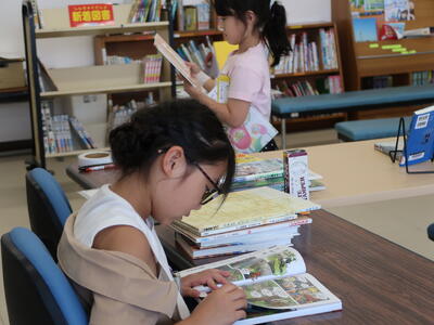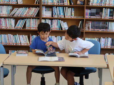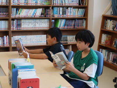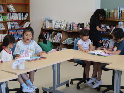 静かに、夢中になって本を読んでいる子、友だち同士で読んでいる子。さまざまな本読みの様子が見られます。