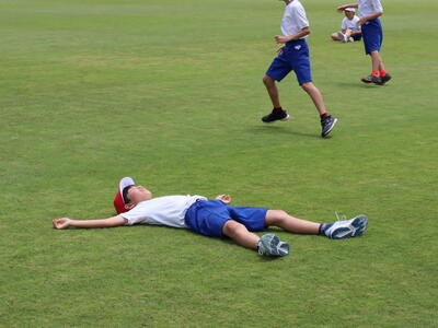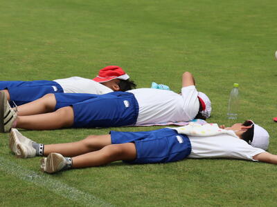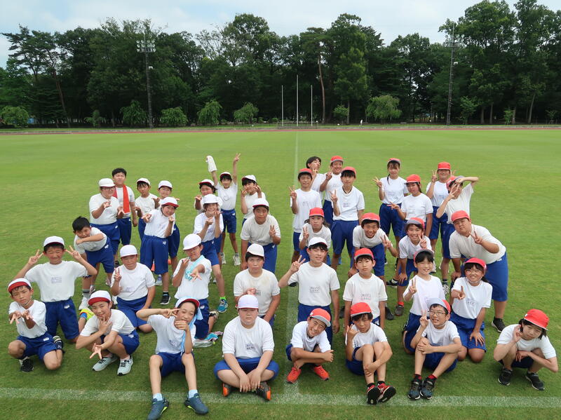 終わった後は、なかなか入れないスタジアムを堪能する時間を取りました。「貸し切りってすごいよね~」子どもたちはそんなことを口にしながら、芝生に寝転んだり、トラックを走ってみたり、おにごっこをしたり。それも子どもたちにとって貴重な体験になったと思います。