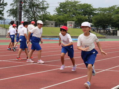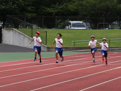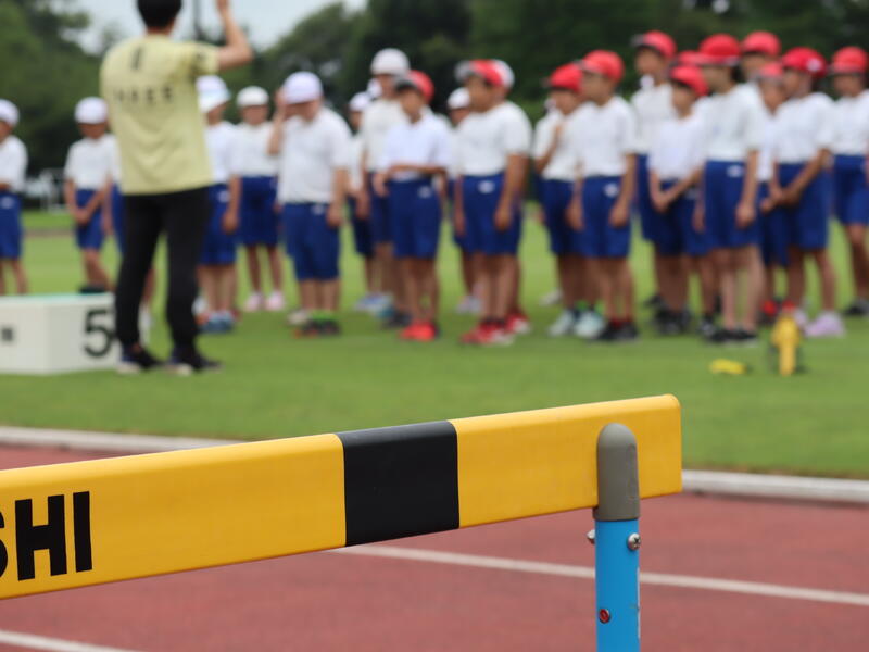 種目は、100mに全員が参加、50mハードル、走り幅跳び、ボール投げの3種目で、自分がチャレンジしたい種目にエントリーして記録に挑戦です。「より速く、より遠くへ」。自己記録更新もあるでしょうし、「あの友だちには勝ちたい」という気持ちで臨む子もいたでしょう。いずれにしても、自分のめざす目標に向かって一人一人が記録に、そして自分自身に挑戦していた姿が見られうれしく感じました。