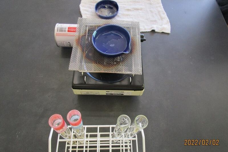 蒸発させたら白い粉が出てきました。次はその「白い粉」が元の金属と同様の性質かどうかを確かめる実験です。