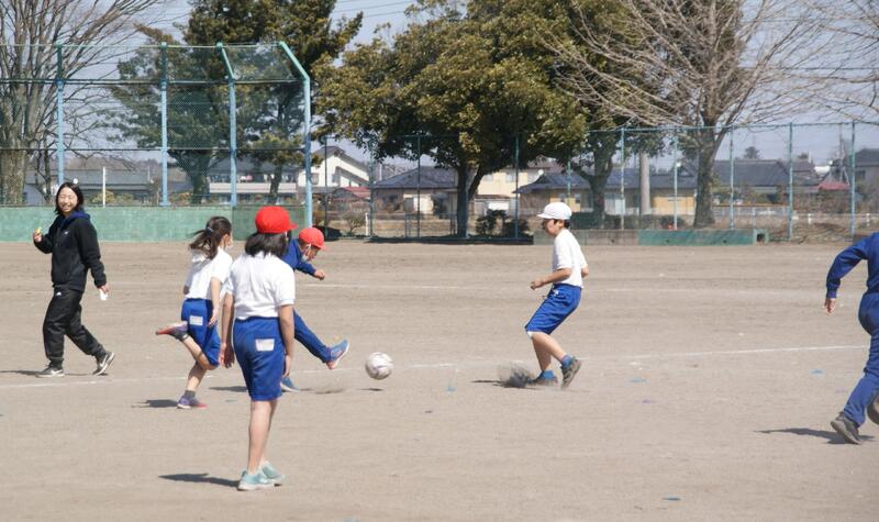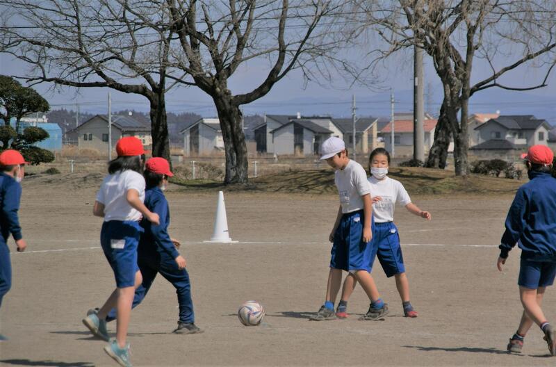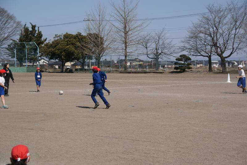 4年生の体育「ゴール型(ラインサッカー)」の授業の様子です。