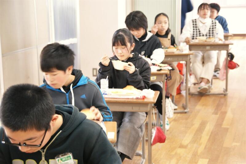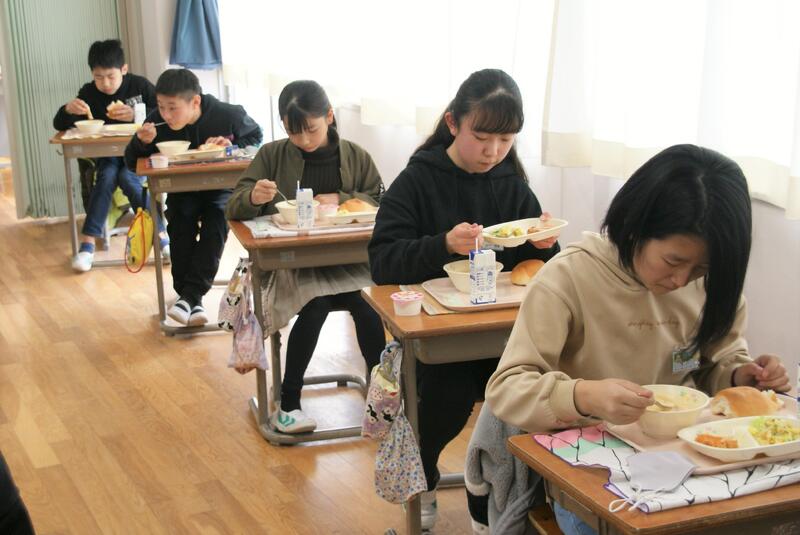 子どもたちは、6年間お世話になった先生方や調理員さんに感謝して給食をいただきました。