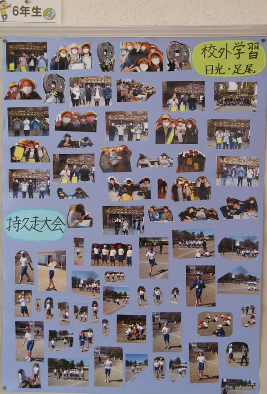 本日の卒業式では、体育館の壁面に「卒業生の1~6年生までの写真」が飾られました。