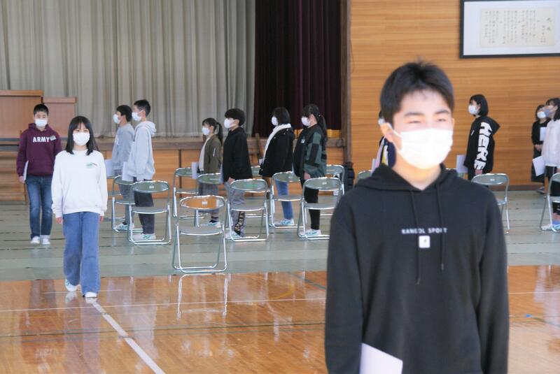 今日の卒業式の練習の様子です。ひととおり確認していました。写真は退場の様子です。