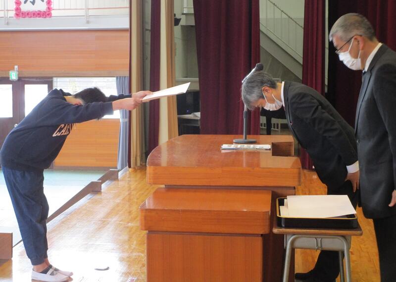 本日3/15(火)、3時間目と4時間目の間を少し長く時間を確保し、臨時集会「表彰」を行いました。