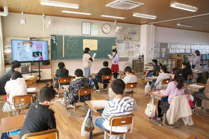 5年生の外国語「Unit8  Who is your hero?」の授業の様子です。