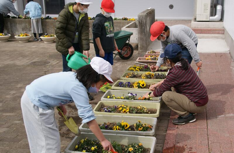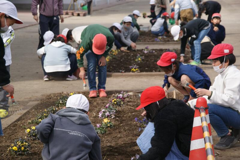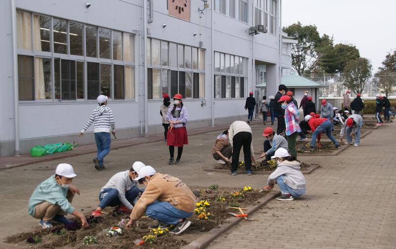 本日【3/11(金)】の昼休み~清掃の時間を活用し、子どもたちが花壇を整備しました。