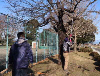 年末年始に向けて、樹木もすっきりとし、校庭もきれいになりました。ありがとうございました。先日の「さくら隊」の皆さまによる清掃、そして今回の「桜守の会」の皆さまによる枯れ枝伐採など、本校は、本当に地域の皆様に支えられていることを実感しています。
