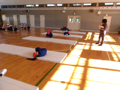 1年生の様子です。体育科の「マットを使った運動遊び」で、マット遊びをしました。いろいろな方向への転がりや新しい転がりの行い方を練習しました。