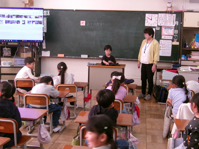 生活科「じぶんで できるよ」の授業の様子です。自分ができることを考え、家庭で実践しました。実践した様子を、動画や実演でみんなに発表しました。