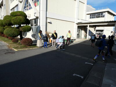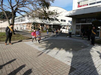 今朝は、あいさつ巡回活動でした。市の少年育成サポーターの方々や民生児童委員の方々、PTA執行部の方々が、昇降口で子どもたちと挨拶を交わしてくださいました。肌寒い中でしたが、元気な子どもたちの挨拶が響きました。地域の皆さん、保護者の皆さん、ありがとうございました。