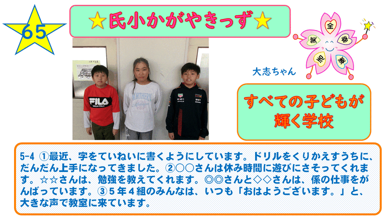 ※ ホームページでは、児童の氏名の部分を○○さんに変えています。