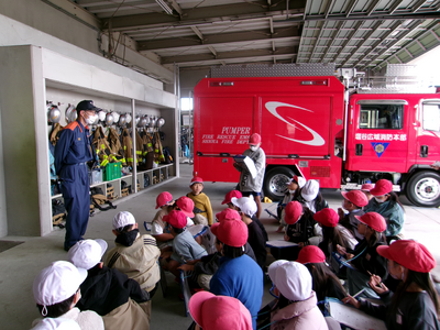 3年1組が、社会科「火事から人びとをどう守るの」の学習で氏家消防署を見学しました。見学を通して、消防署の役割や働きと暮らしとの関連について調べました。