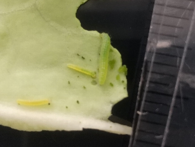 じつは、このきろくを書きはじめるときに、10こくらいたまごをとってきていたのですが、よう虫が生まれなかったたまごもあるし、小さいうちにしんでしまったよう虫もいます。